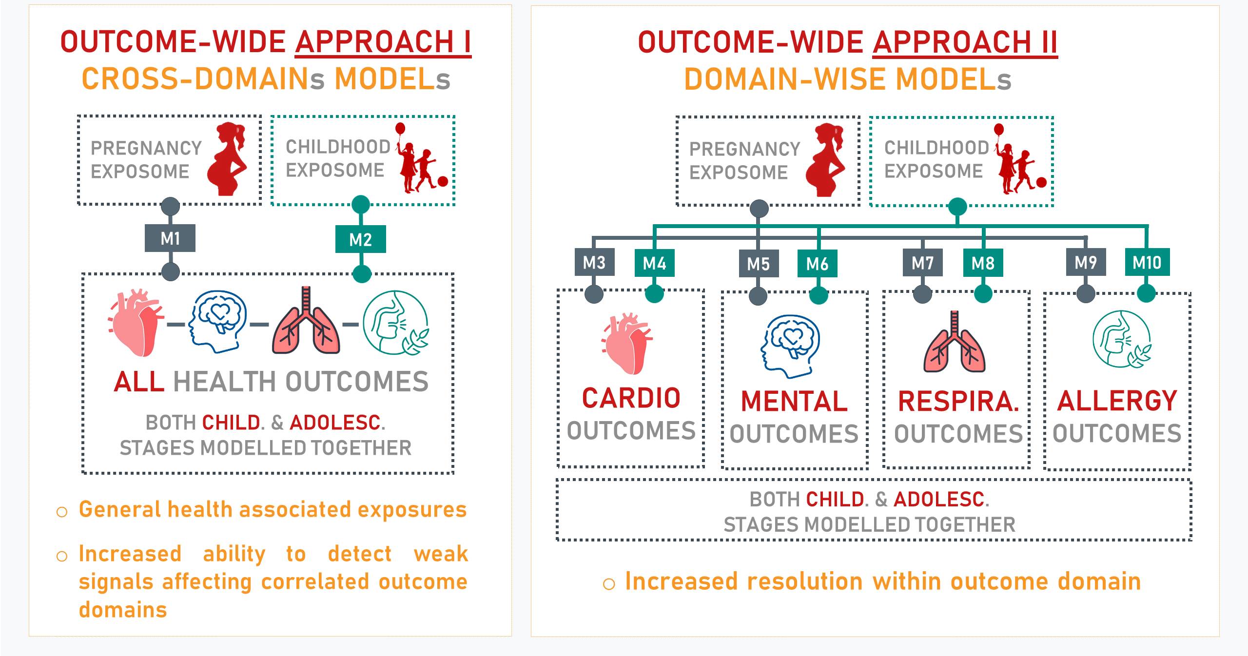 Additionally, we employed an innovative Outcome-Wide Exposome Association Analysis approach, to jointly estimate prospective associations between a broad spectrum of 198 prenatal and childhood environmental exposures and the 11 health outcomes assessed at two developmental stages.